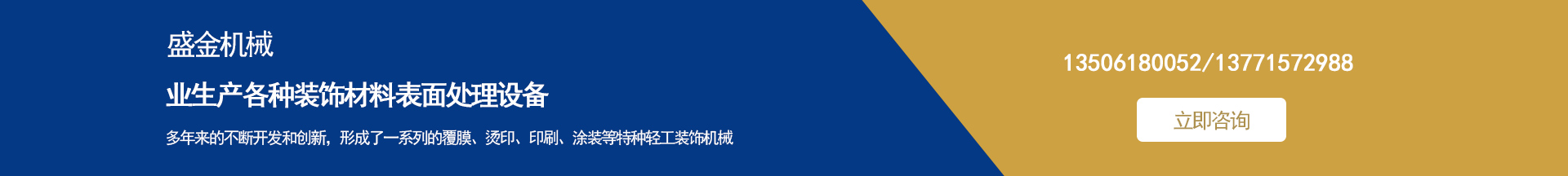 盛金機械專業(yè)生產(chǎn)各種裝飾材料表面處理設備 集多年來的不斷開發(fā)和創(chuàng)新,形成了一系列的覆膜、燙印、印刷、涂裝等特種輕工裝飾機械。并敢于和善于開發(fā)用戶急需的特殊要求機械設備。